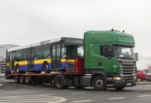 Solarisy Urbino IV generacji w drodze do zajezdni KM Płock