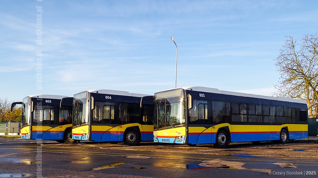 27 października do płockiej zajezdni dotarły trzy Solarisy Urbino 12, które otrzymały numery 803-805, a 14 listopada dołączyły do nich dwa Urbino 18 nr 806-807. Pojazdy wyposażone są w silniki diesla spełniające normę emisji spalin Euro-6. Autobusy pozostają własnością miasta i są dzierżawione miejskiej spółce.