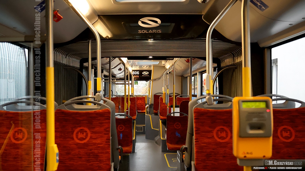 We wnętrzu pojazdów na pasażerów, jak i kierowców czekają nowości. Jedną z nich są sterowniki SRG-7000P. Kierowcy z pewnością najbardziej docenią pełną zabudowę kabiny z wydzielonym wejściem przez przednie skrzydło pierwszych drzwi (podobnie, jak w Solarisie #752, który do tej pory jako jedyny posiadał takie rozwiązanie). Prowadzącego wspomagać będą zaawansowane systemy bezpieczeństwa ogólnego (GSR) obowiązujące od 7 lipca 2024 r., zgodnie ze zaktualizowanym rozporządzeniem UE (wizualnie pojazdy z zewnątrz zyskały kamery na przednich słupkach oraz na środku pod przednią szybą), m.in.: