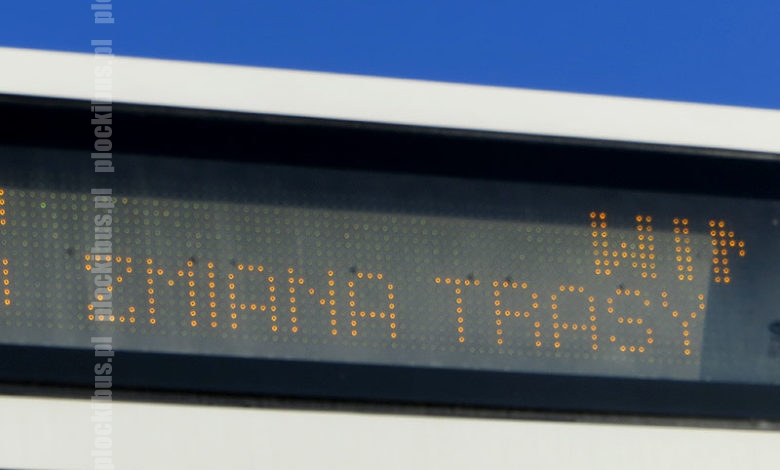 - W kierunku poza miasto: trasa bez zmian do przyst. Jachowicza (teatr), dalej: Bielska (przyst. Mosty, Kochanowskiego) – NSZ – trasa objazdowa* – Gałczyńskiego (przyst. Słowackiego) – od ul. Dobrzyńskiej trasa bez zmian