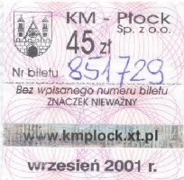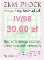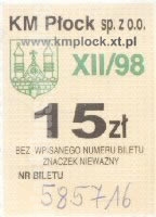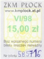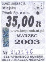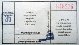 Kilka zachowanych znaczków, a także bilet miesięczny, do którego przyczepiało się znaczek. Obowiązywał przez 15 dni lub przez miesiąc, a jego cena zależała od czasu i liczby linii. W październiku 2006 r. Komunikacja Miejska wprowadziła Kartę Miejską, czyli bilet elektroniczny w postaci plastikowej karty z chipem.